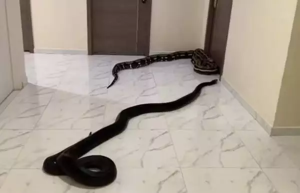 由網傳片段可見,公寓走廊中出現2條活生生的黑色及棕色大蛇,只見2條大蛇在地上緩慢爬行,引起住戶驚慌。2條蛇的品種尚待鑑定,不過有網民猜測牠們可能是價值不菲的寵物蛇。