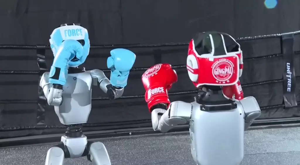 今年4月,宇樹科技發佈標題為《Unitree 鐵甲拳王:覺醒!》的視頻,呈現了機器人擊打固定目標的出色能力,還安排了機器人與人類以及另一台G1機器人的精彩對打場景。