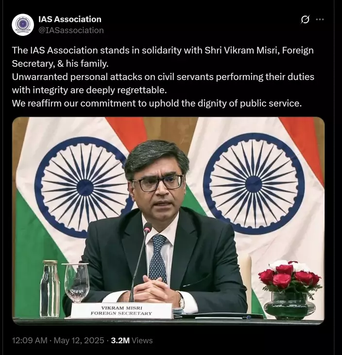 5月7日新一輪印巴衝突爆發後,印度舉國上下慶祝勝利,惟5月10日印巴突停火,令不少印度人感憤怒,認為是把勝利拱手讓人, 印度外交秘書唐勇勝(Vikram Misri)因代表政府宣布印度和巴基斯坦已同意停止軍事行動而在社交媒體遭人身攻擊,更被罵「賣國賊」。