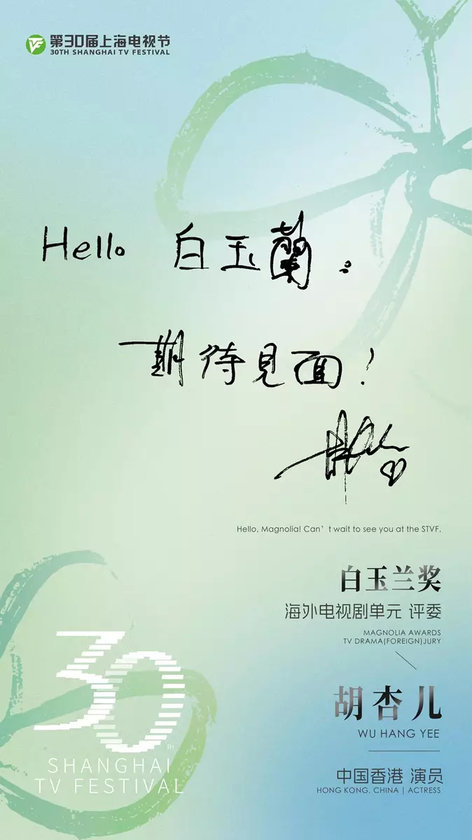 胡杏兒獲第30屆「上海電視節白玉蘭獎」邀請擔任海外電視劇單元評委會成員之一。