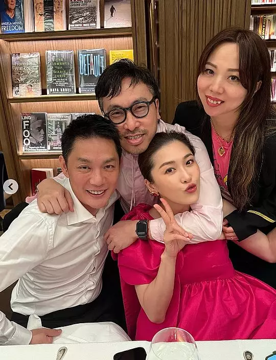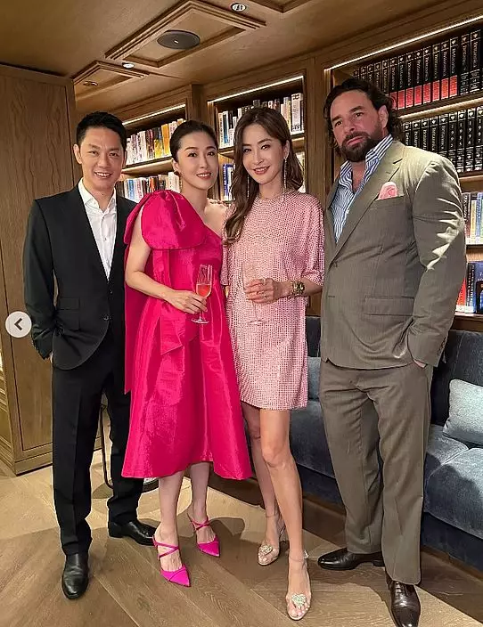 生日派對除了有一班圈中好友,包括上山詩鈉、黃佩霞等,周汶錡的法籍老公Julien Lepeu和周勵淇的演員都公傅浤鳴(前名傅程鵬)都有出席,兩對夫妻齊齊合照,見到兩位男士更飲到面紅紅,似乎玩得相當盡興!