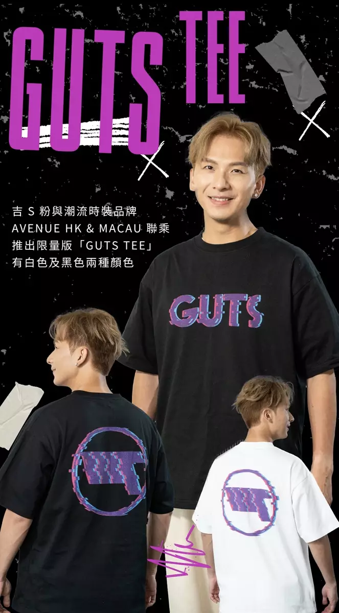 吉S粉更與潮流時裝品牌 Avenue HK & MACAU 聯乘推出限量版「GUTS Tee」,有白色及黑色兩種顏色