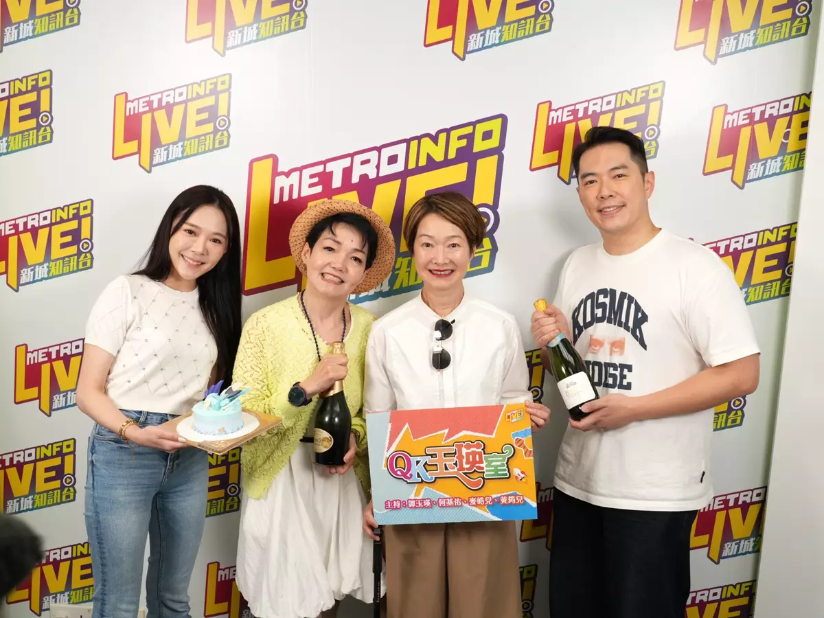 新城廣播節目《QK玉瑛室》主持譚玉瑛(阿譚),今年2月跑樓梯時意外跌斷腳,後來更要入院接受手術治療,留醫一個月後休養至今,於今天(22日)正式復工;阿譚的兩位拍檔何基佑、黃筠兒及知訊台台長程凱欣,特別送上香檳及蛋糕慶祝她回歸,阿譚更即場開香檳暢飲,現場歡笑聲不絕。