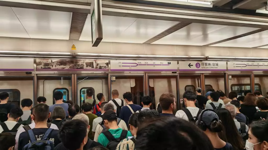 北角站迫滿受影響的乘客。巴士的報記者攝