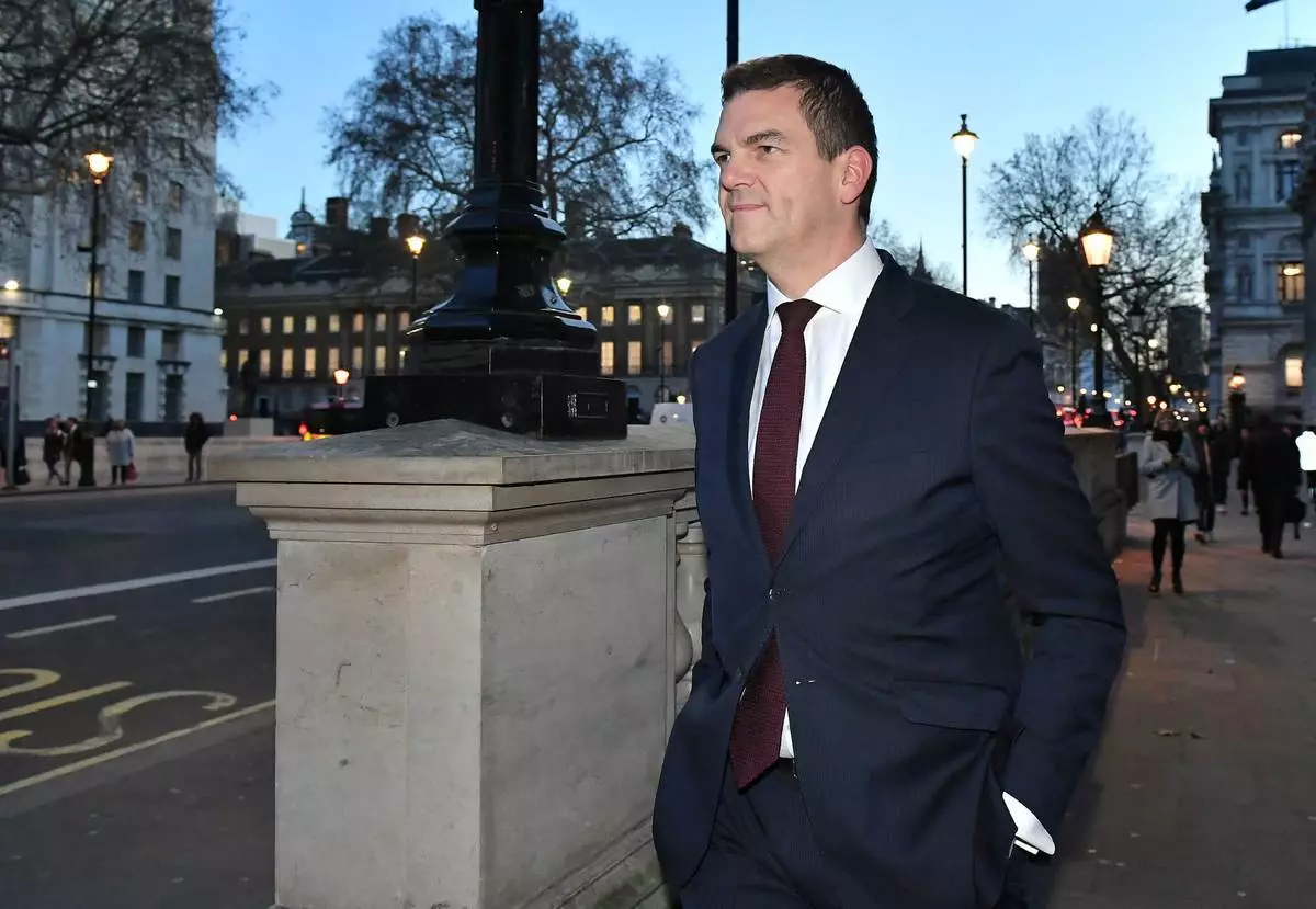 檔案圖片:羅賓斯(Olly Robbins)於2019年1月17日在倫敦威斯敏斯特(Westminster)白廳(Whitehall)行走。(Dominic Lipinski/PA via AP圖片) AP圖片