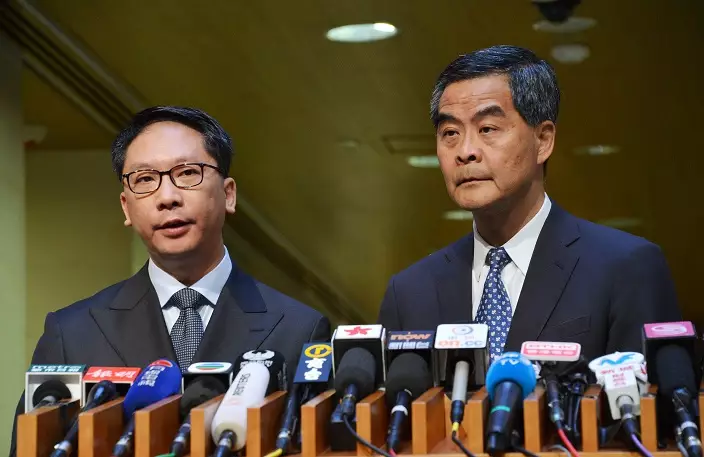 袁國強(左)及梁振英(右)入稟禁止梁頌恆及游蕙禎再宣誓(資料圖片)