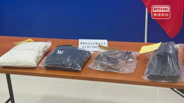 警方檢獲涉案衣物。(盧紫菁攝)