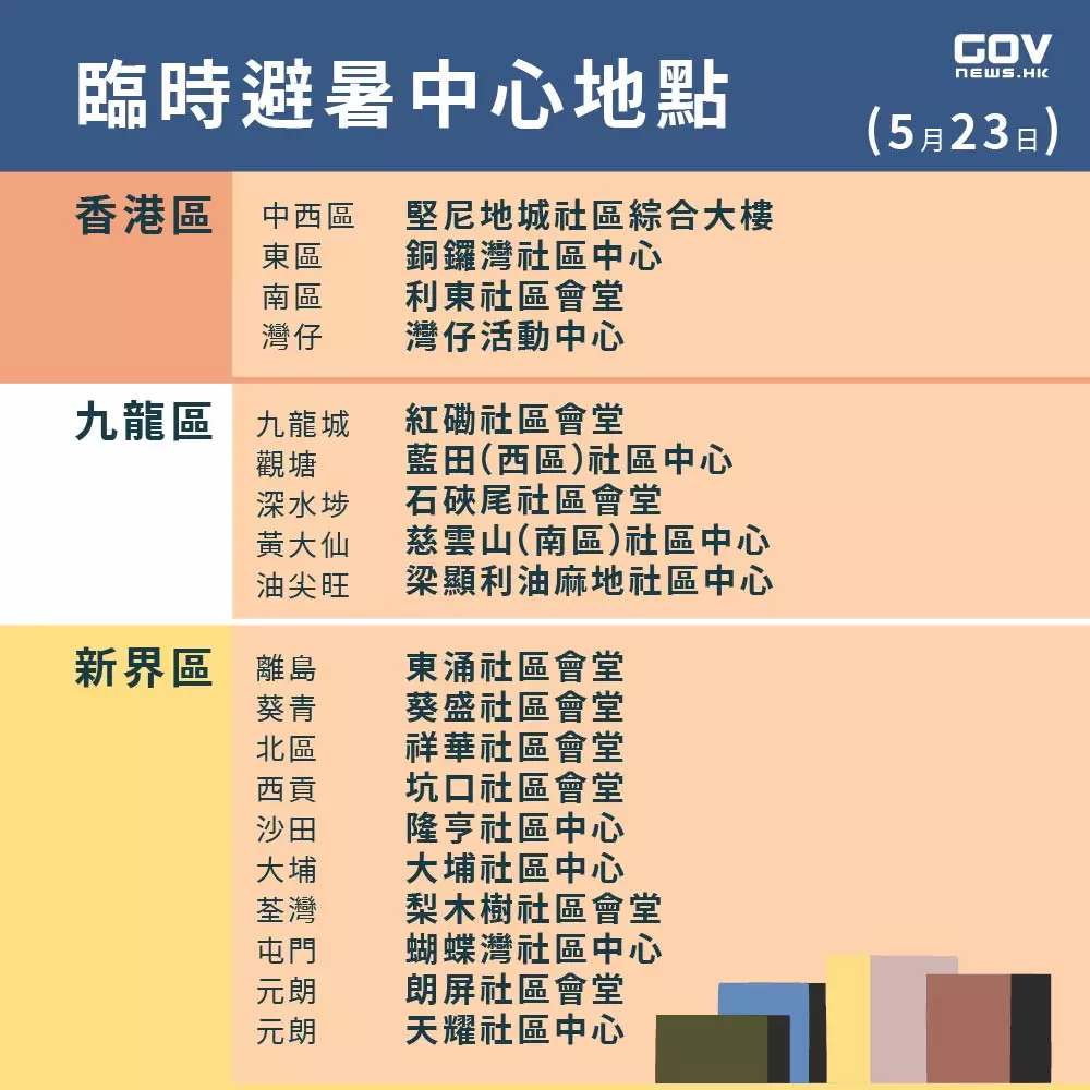 民政事務總署繼續開放19間社區會堂和社區中心作臨時避暑中心。