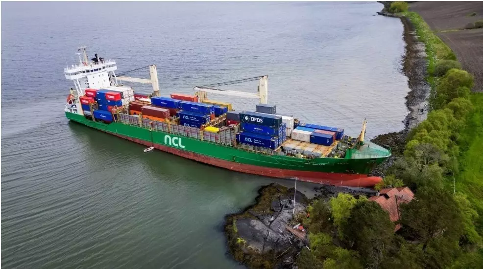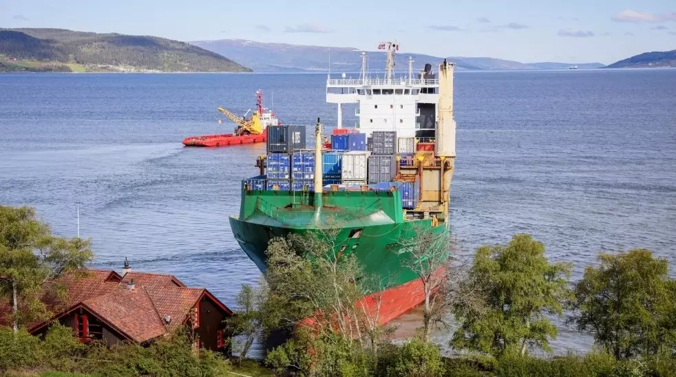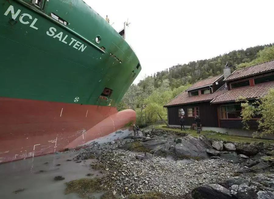 綜合外媒報導,挪威一艘長達135米的貨船「NCL Salten」於5月22日凌晨近5時駛入特隆赫姆峽灣(Trondheim fjord),計劃前往西部城市奧坎厄爾(Orkanger)。未料,貨船突然以每小時30公里的航速直衝向岸邊,撞進當地男子赫爾伯格(Johan Helberg)住所的前花園,險些波及房屋。