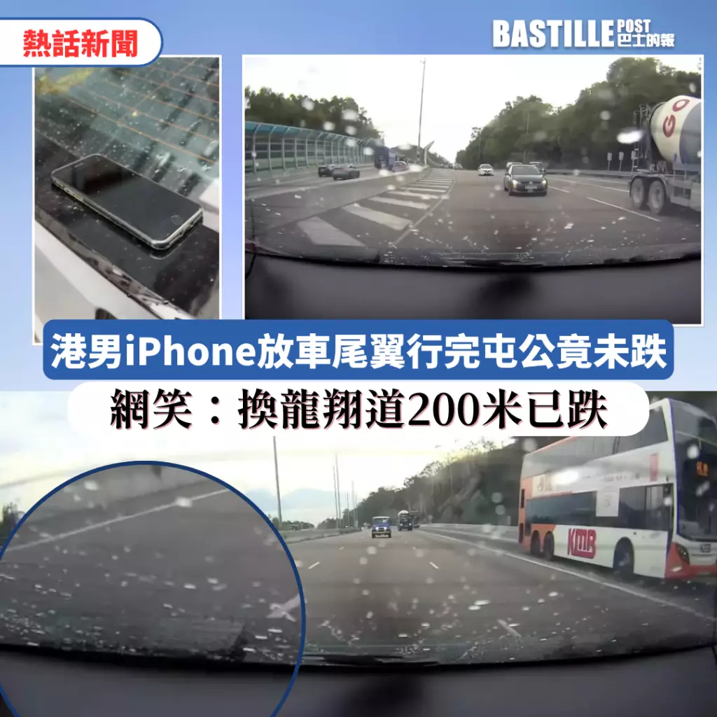 一名港男日前在社交平台分享驚險經歷,指自己不慎將iPhone放在私家車尾翼上,隨後駕車由屯門經屯門公路前往葵涌,全程竟未跌走手機!