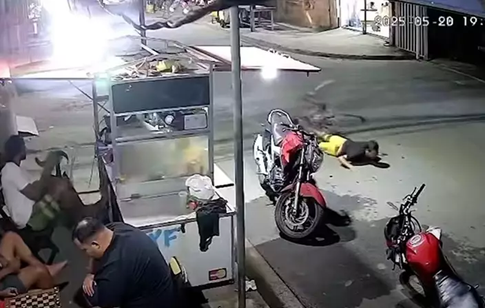 綜合外媒報導,巴西里約熱內盧州(Rio de Janeiro)一名男子5月20日晚上7時在街上踩單車時,意外撞上一隻突然衝出馬路的狗狗,導致失去平衡連人帶車重摔在地。