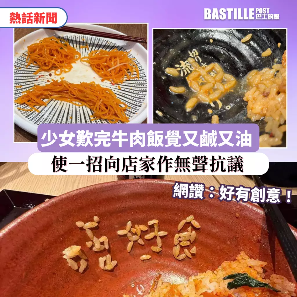大家出外用膳難免會遇上一些食物質素不佳的餐廳,一般人或會在社交群組出帖文,或影相在食評網站留負評,但日前有位少女卻在食完一碗牛肉飯後,用碗上剩餘的飯粒砌了「唔好食」及「油」的字眼,藉此向店家反映意見!