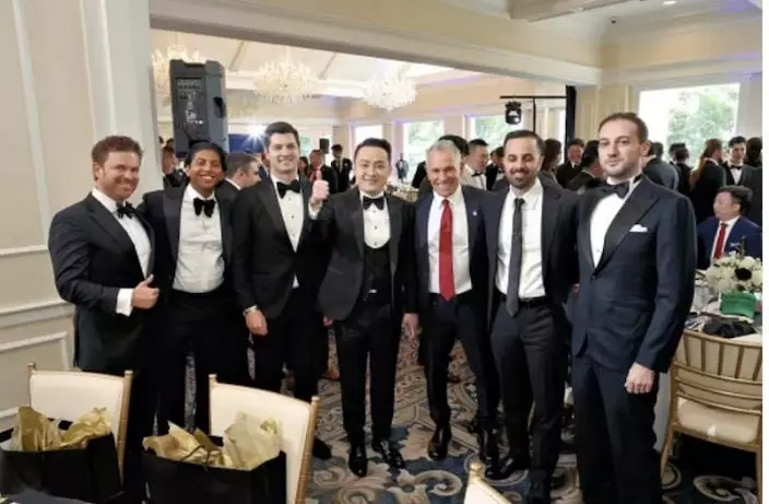 在中國內地搞加密幣「波場幣」致富的孫宇晨(中),購入大量「特朗普幣」捧侵侵場,成為晚宴的上賓。他還出任這計劃的顧問,加入特家族的利益團夥,齊齊發財。