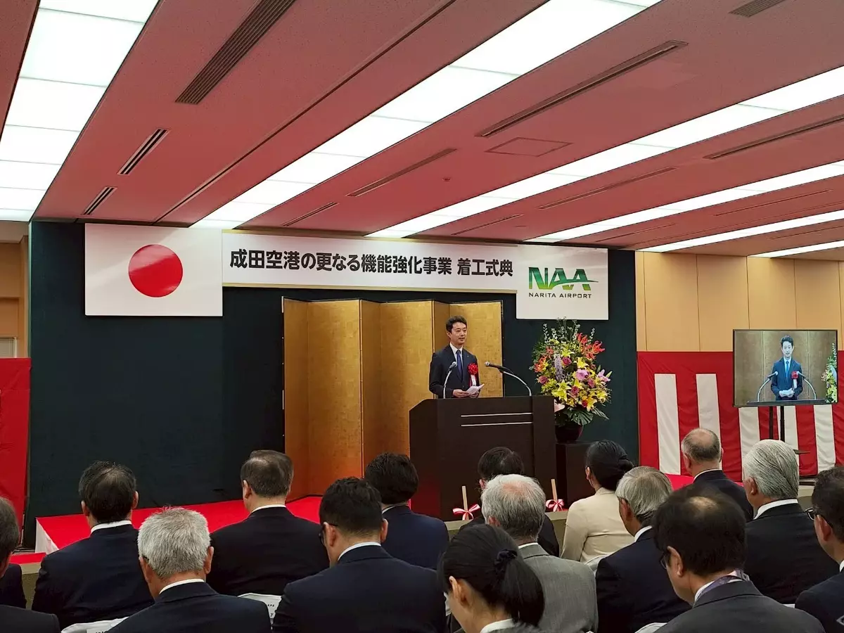 社長田村明比古在儀式上致辭時表示,為提升訪日外國遊客接待能力,進一步強化機場功能是重要課題。將盡全力安全切實推進工程完成。