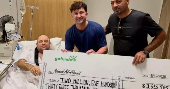 澳洲悉尼邦迪海灘槍擊案中,徒手奪槍英雄Ahmed近日在病床上接過逾250萬澳元(約1287萬港幣)善款支票,卻謙虛反問:「我配得上嗎?」