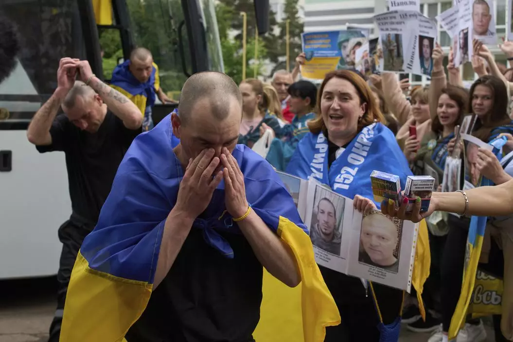俄羅斯襲擊烏克蘭之際,兩國完成戰事爆發以來最大規模的俘虜交換,雙方分別向對方移送1000名被俘的士兵和平民。AP圖片