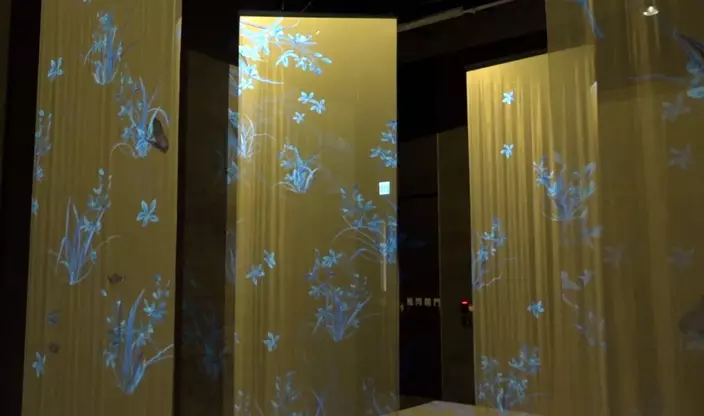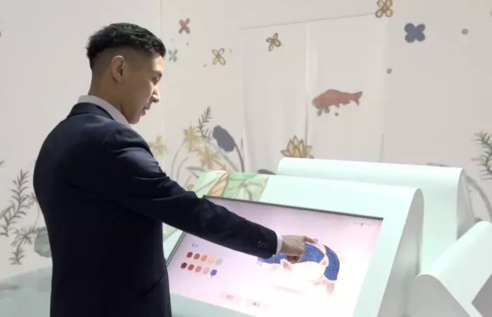 她說,「錦繡紋章是一個好的打卡位,原因是服裝上的紋飾被抽出來做三維呈現。蝴蝶會圍繞著觀眾,是沉浸式體驗。」鄭寳珊稱觀眾可在「古紋新生」體驗空間自行設計魚的紋飾,對面熒幕接著會出現觀眾所設計的魚,並在觀眾身邊暢游。