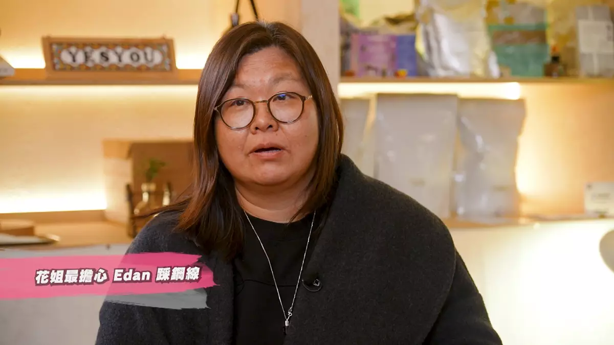 Edan指花姐近年少了找自己分享心事,一度忍不住眼濕濕哽咽:「以前花姐唔開心嗰陣都會搵我,但係近年少咗。就會諗會唔會係我帶咗好多麻煩俾佢。以往我都唔使佢擔心,但不知不覺間都有加重咗佢嘅負擔」。