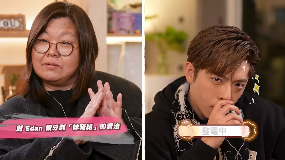 今晚(5月26日)播出的一集,有Edan做第一位嘉賓同花姐深情對話。花姐坦言Edan是唯一一個沒有私底下單獨見面的成員,令他十分驚訝原來其他成員會和花姐單獨食飯。花姐指當初揀選「妹豬組」成員時,目標是想打造漫撕男小組,笑言並沒有考慮過Edan:「本身係想好似《流星花園》咁4個靚仔,點會諗到佢。點知神推鬼㧬就俾咗佢入咗嚟。所以覺得呢組都仲係有啲缺陷」。