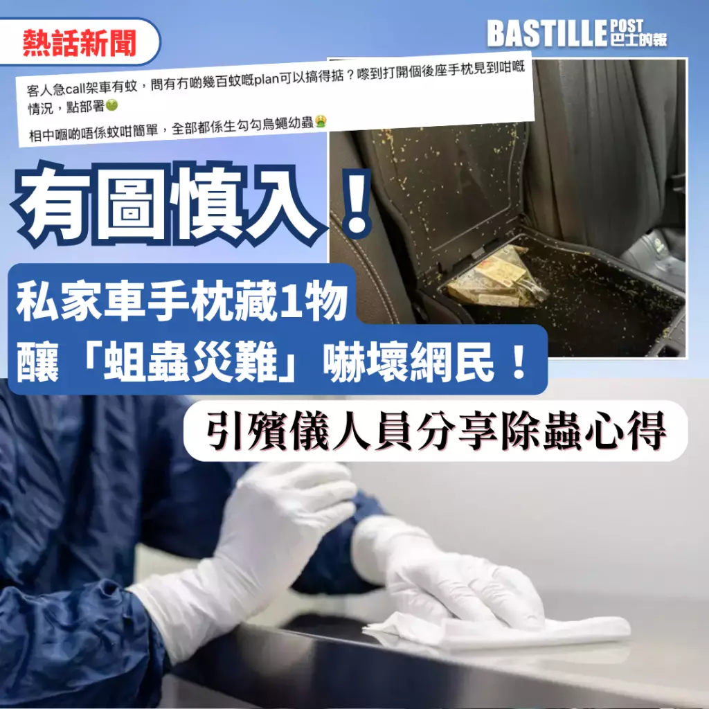 一間汽車美容公司在Threads分享近期一宗駭人聽聞的清潔案例,原來是在一輛私家車內發現大量蛆蟲!相關照片更令不少網民直呼「毛管戙」。