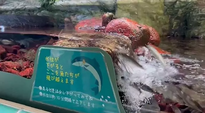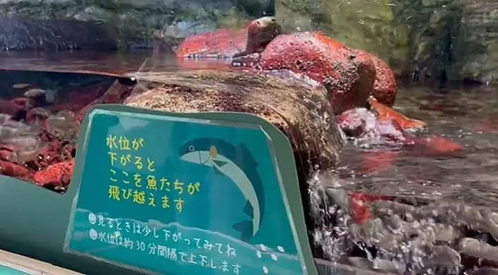 據水槽前的解說牌,水槽部分區域的水位每半小時下降一次,形成湍急的小瀑布,迫使魚兒展現其逆流而上的自然習性。姬路市水族館在接受日媒採訪時表示,這項設計刻意模擬野外河流的環境:水位升高時,魚兒可自由遊動;一旦水位變化,水流路徑受限,魚兒便需跳躍台階以逆流而上。