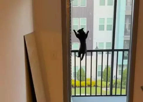 綜合外媒報導,美國奧蘭多一對夫妻安娜和凱撒飼養了一隻賓士貓「尼寇」(Nico)。近來,他們帶著尼寇一起搬往新屋居住,沒想到尼寇對新環境異常興奮,以飛快的速度在屋內大肆亂竄。當牠發現陽台門未關時,竟瞬間衝向前準備「投奔自由」,結果奮力一躍被護欄攔住,令飼主當場大笑。