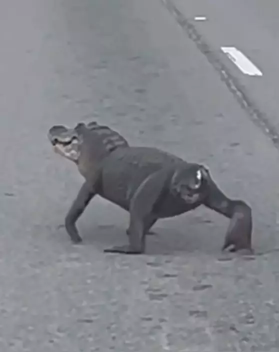 美國一處公路驚現一隻「斷尾巨鱷」緩慢爬行,有民眾目擊驚呼:還以為是法鬥!