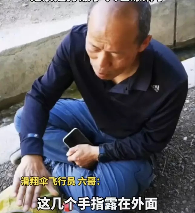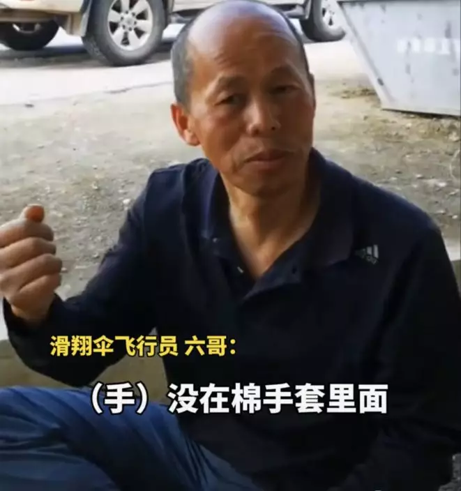網傳畫面可見,當時「六哥」未佩戴氧氣面罩,臉部直接暴露在高空中,身上結滿冰霜與冰渣,但他仍竭力保持意識控制滑翔傘,最終安全降落至海拔1000多米的安全區域。「六哥」事後憶述,身處高空時明顯感到缺氧,手指因外露被凍到失去知覺。