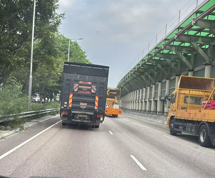 受事故影響,屯門公路近兆康站往元朗方向的中線及快線暫時封閉,以配合緊急維修工作。FB圖片