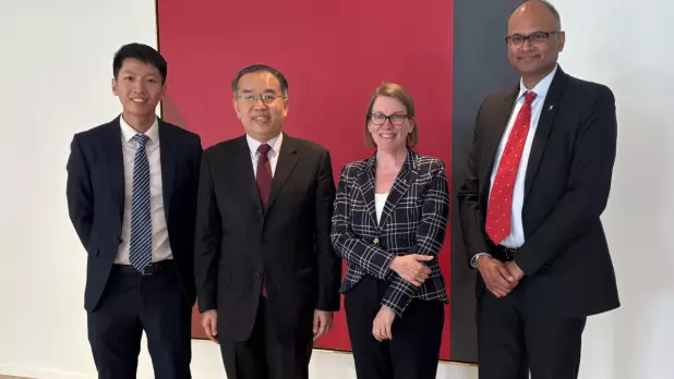 許正宇(左二)加拿大行程首站到訪多倫多,與豐業銀行代表會面。(財庫局圖片)