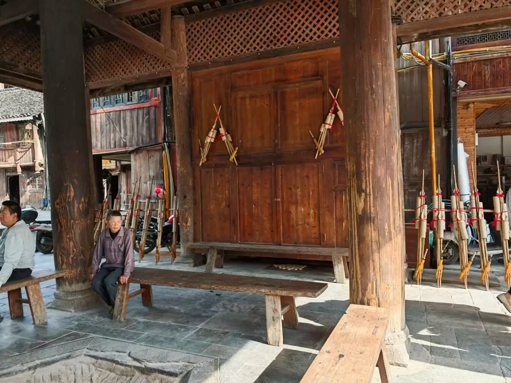 習主席考察當地時,就是坐在村內這涼亭中與村民聊天,了解他們生活工作貴州肇興侗寨。巴士的報記者攝