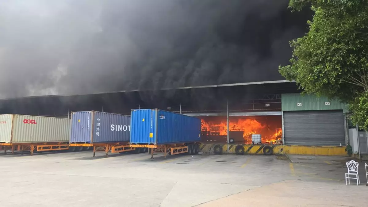 天水圍厦村一貨倉發生三級火 濃煙直捲半空一男子受傷送院。FB圖片