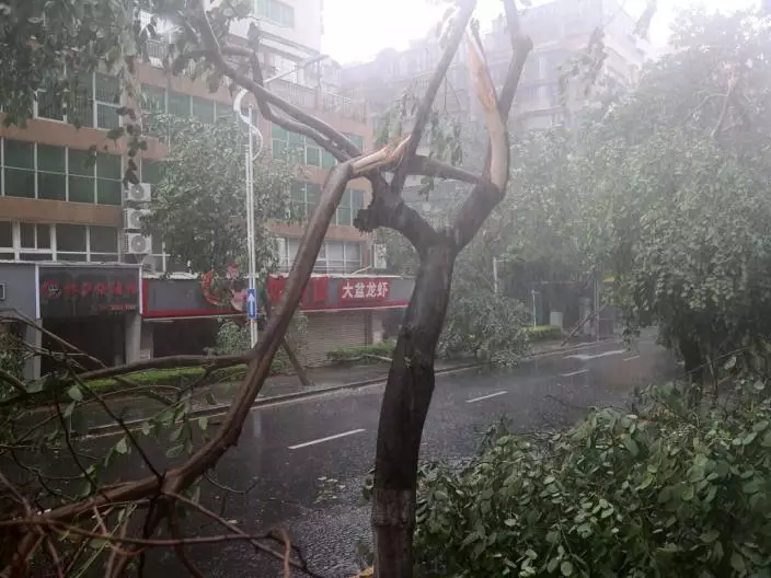 杜蘇芮2023年吹襲福建廈門,街上不少大樹被吹倒。資料圖片