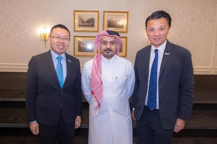 參與卡塔爾和科威特訪問團的生產力局主席陳祖恒議員(右五)與億航、西井分別達成了合作備忘錄,推動創新技術落地應用。