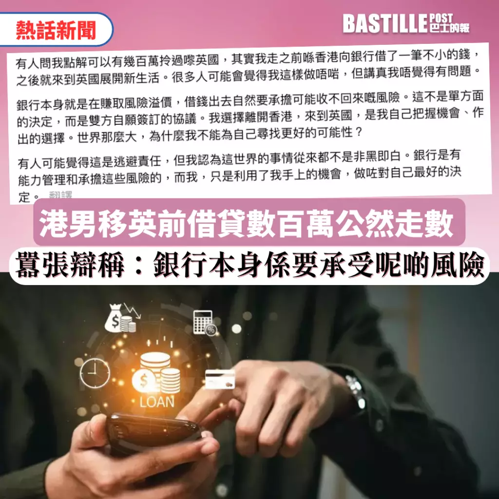 港男移英前借貸數百萬公然走數 囂張辯稱:銀行本身係要承受呢啲風險