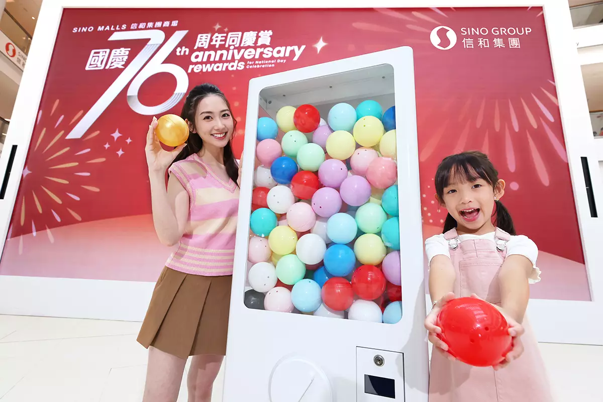 為慶祝中華人民共和國成立 76 周年,商場特設巨型扭蛋機,派發逾萬份小驚喜,與全港市民及訪港遊客一同提升幸福感,感受國慶的熱烈歡樂氣氛。