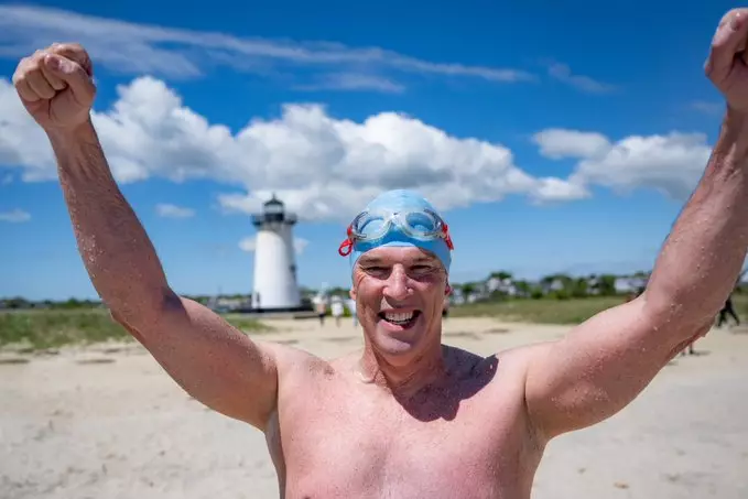 電影《大白鯊》已上映50週年,英國一名男子為喚起大家對鯊魚保育的意識,花12天環「游」《大白鯊》的拍攝地,完成約60英里(約97公里)的挑戰。