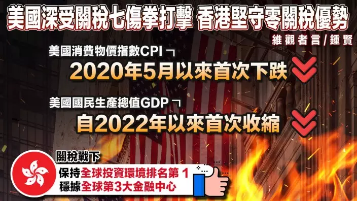 特朗普開打關稅戰,對美國的打擊陸續浮現,先有美國3月消費物價指數(CPI)自2020年5月以來首次按月下跌,反映消費信心疲弱; 再有其首季本地生產總值(GDP)自2022年以來按年率計首次收縮。特朗普面對國內經濟壓力及供應品不足問題,終於暫緩對華關稅90日,爭取時間在萬聖節、感恩節及聖誕節檔期前夕進口貨品,正好說明關稅「七傷拳」,對美國零售業的遺害。