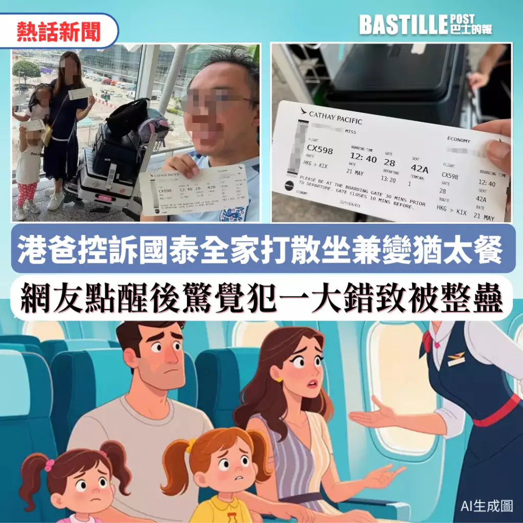 港爸控訴國泰全家打散坐兼變猶太餐 網友點醒後驚覺犯一大錯致被整蠱