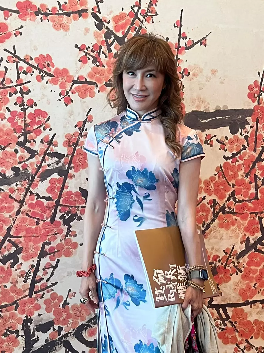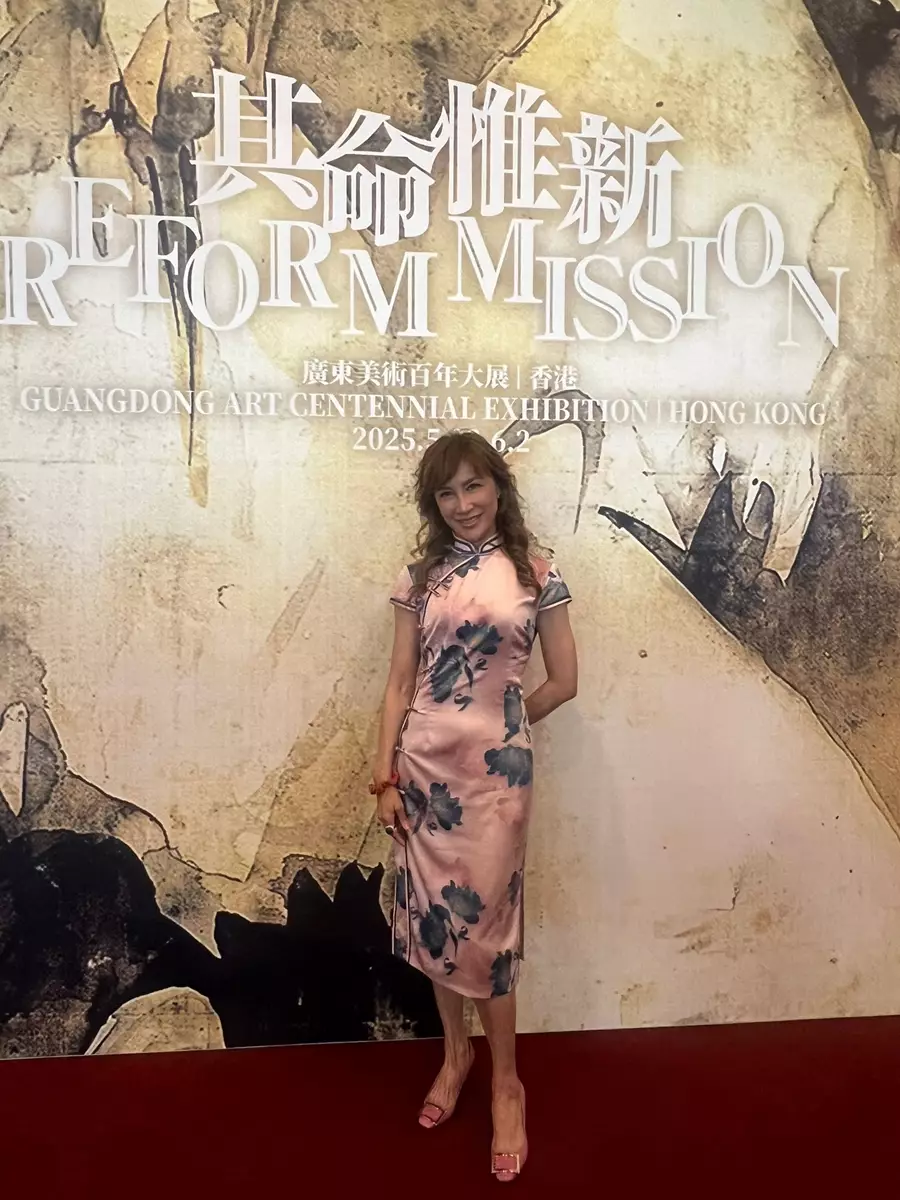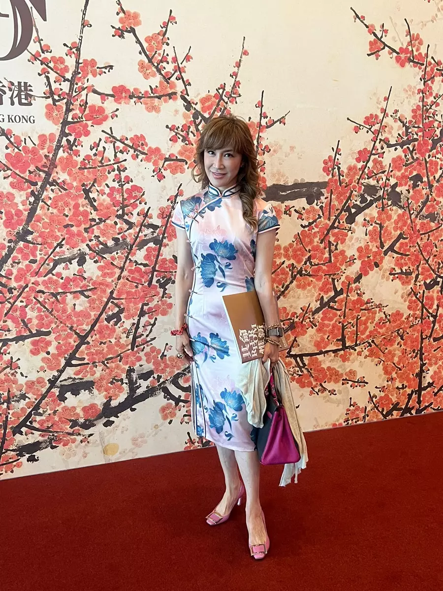 文化體育及旅遊局聯同廣東省文化和旅遊廳、廣東省文學藝術家聯合會和紫荊文化集團主辦的「其命惟新--廣東美術百年大展(香港)」現正於會議展覽中心舉行,李思林(Nancy)今日(5月28日)以旗袍造形現身參觀,並透露從小到大都很喜歡穿旗袍,家裏亦有很多旗袍,因為旗袍能展示中國的傳統。