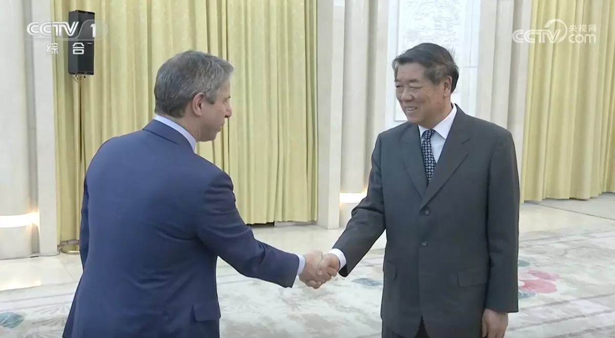 何立峰在人民大會堂會見美國摩根士丹利聯席總裁辛克維茲。辛克維茲對美中經貿會談取得實質進展感到高興,表示將繼續深耕中國市場,為促進美中企業投資合作提供高質量服務。