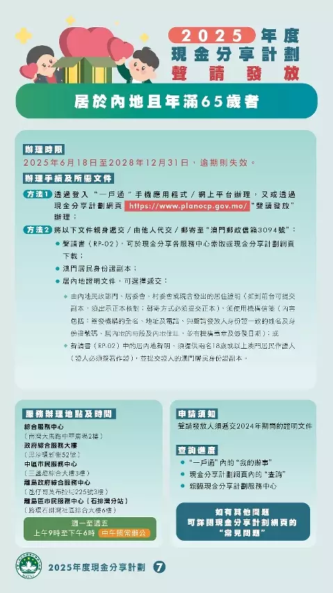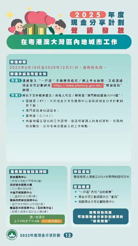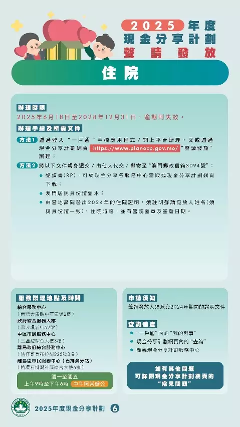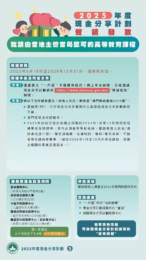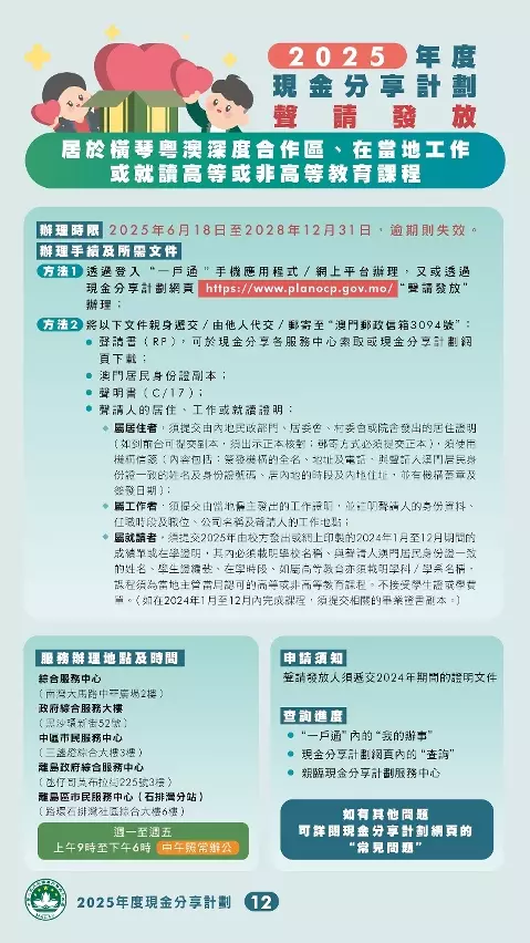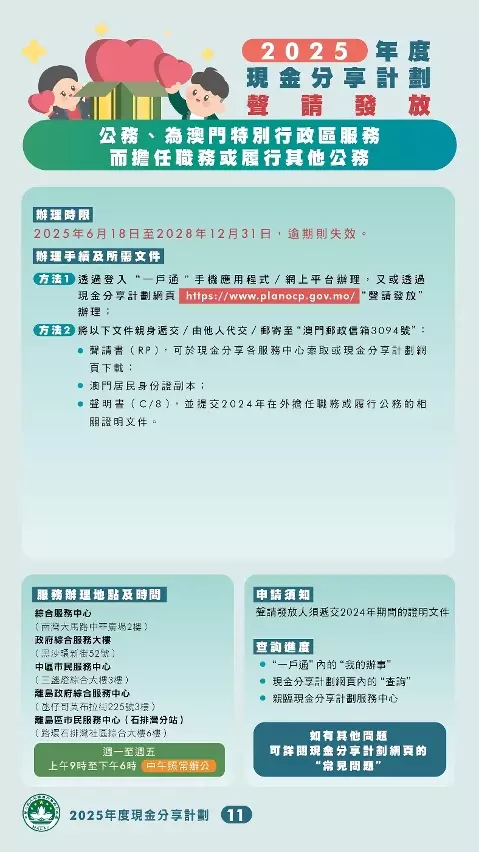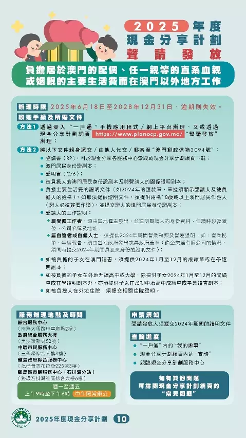 2025年度現金分享計劃-發放時間表。澳門政府新聞局圖片
