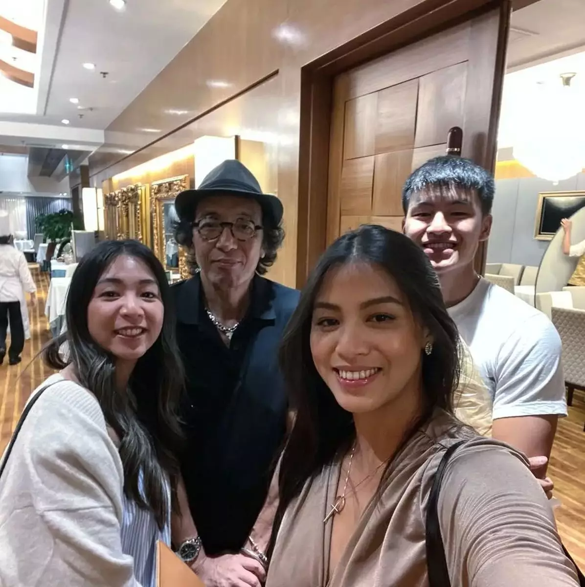兒子的大喜日子,父母當然有出席,爸爸雷葆文一身杏色西裝,頭上戴著標誌性的滕帽配襯圓形粗框眼鏡,打扮相當有Taste,一家人一同合照紀錄這個美好時刻。