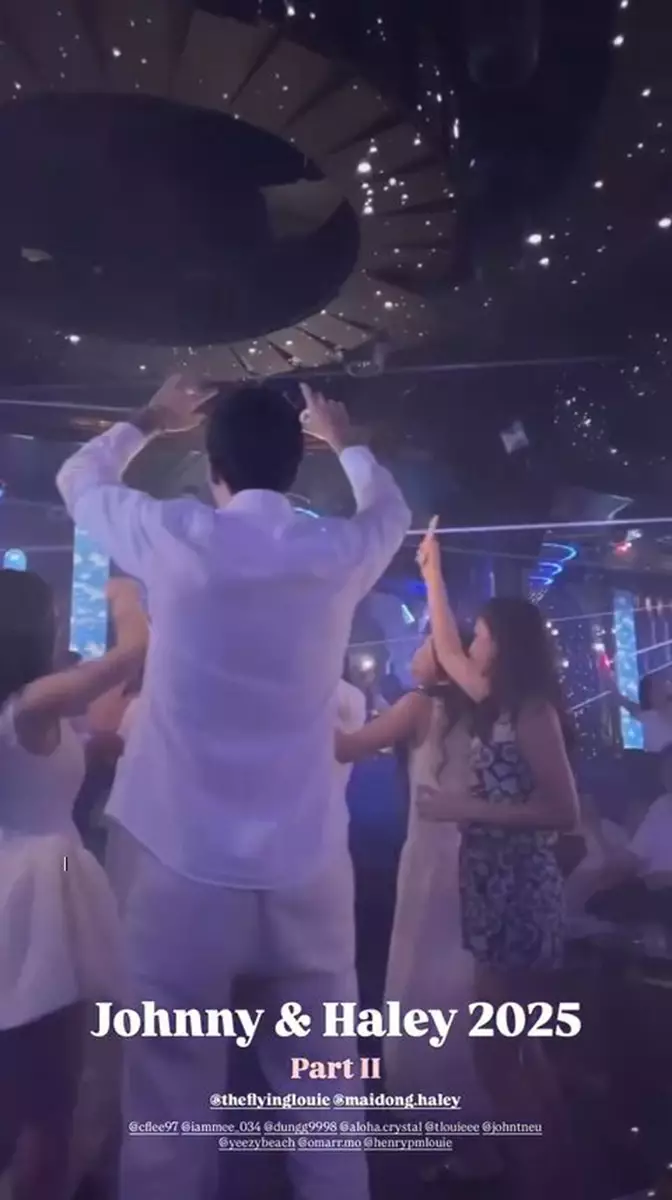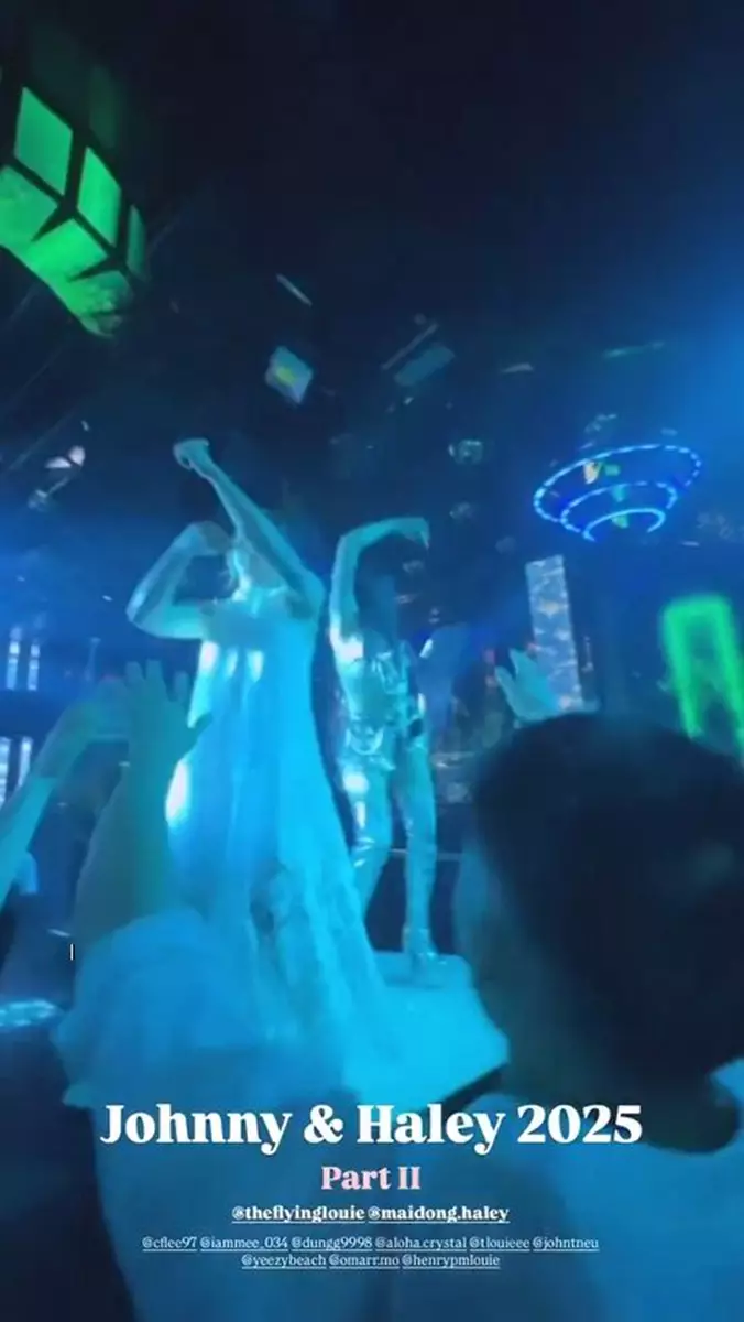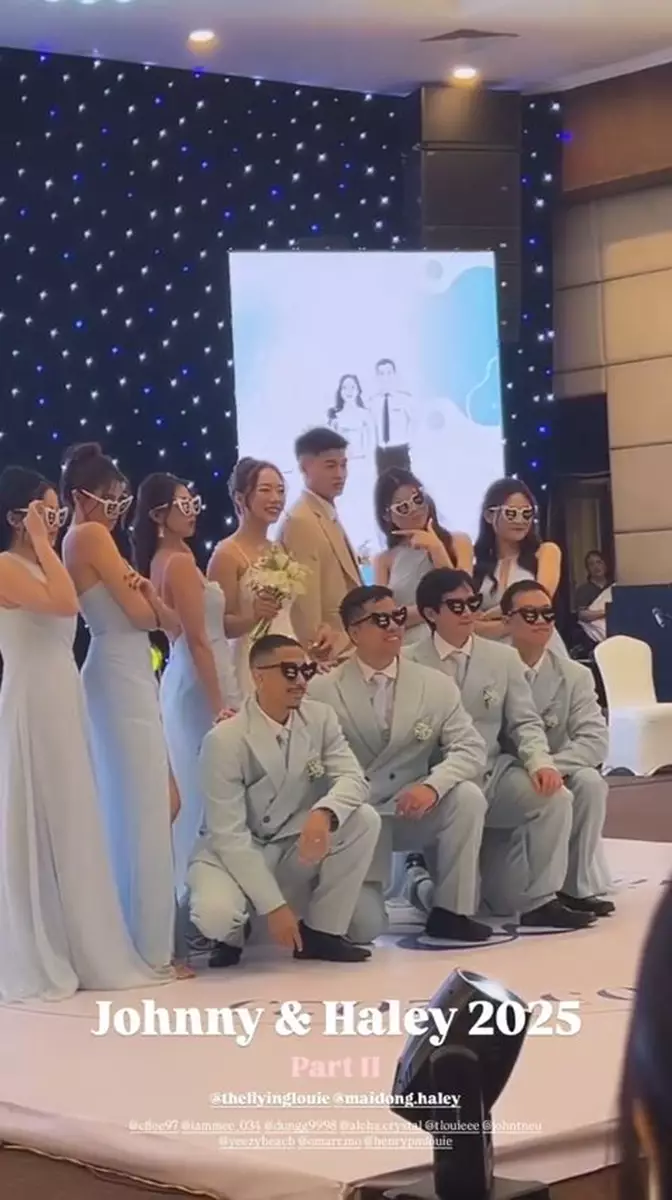 晚上,Johnny租下一個大廳舉辦婚宴,場內有巨形舞台,可容納多人在台上玩遊戲,一對新人在舞台上跳舞,又與兄弟姊妹團戴上造型搞怪的黑超合照,還大玩遊戲,氣氛極好!而身為主人家的Juliette除了向一對新人致詞送祝福,又在場內滿場飛打卡又跳舞,實行讓名位來賓賓至如歸!此外,婚宴後還有after party,一對新人及兄弟姊妹團都換上衣服,繼續飲酒、跳舞又打卡狂歡!