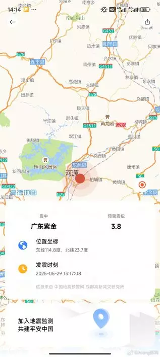 廣東河源發生4.3級地震,本港天文台說,接獲超過十名市民報告,表示感到這次地震,震動維持數秒。