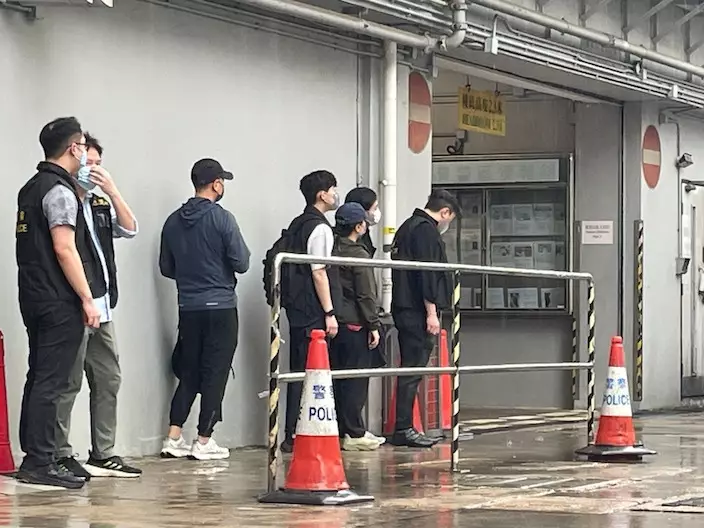 鄭敬基的表妹(左五)及表妹夫(左三)5月29日被警國安處帶走協助調查。
