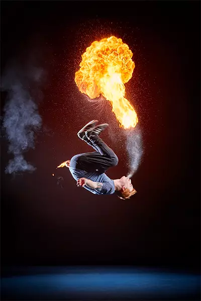 英國一名冒險家在身上著火的情況下,於30秒內完成7次後空翻,打破了健力士世界紀錄。