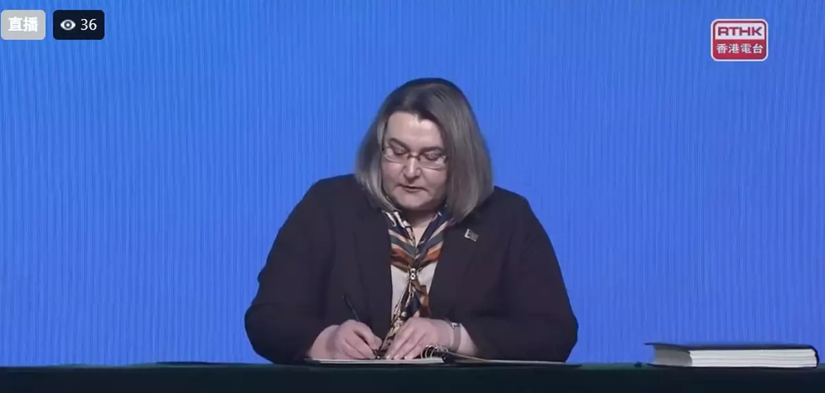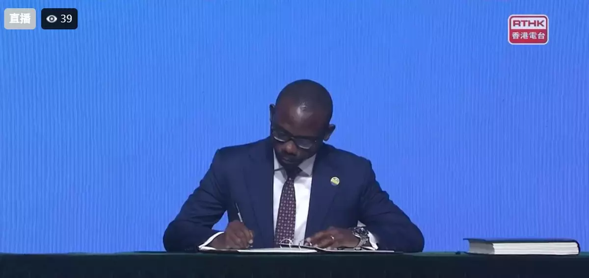 其他簽署國代表亦逐一上台簽署。港台直播影片截圖