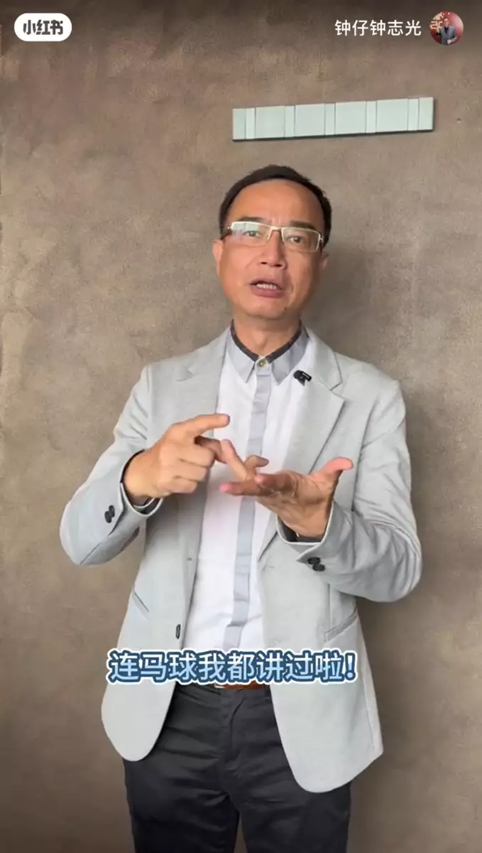 鍾志光在貼文中寫道:「我是中國香港藝人鍾志光,我來小紅書啦!!」並預告將會分享工作和生活日常。他的親民作風立即吸引大批粉絲支持,短短幾日已獲過萬追蹤。網民紛紛留言:「從細聽鍾sir講波到大」、「佳叔把聲真係好有親切感」、「估唔到63歲都咁跟得上潮流」。