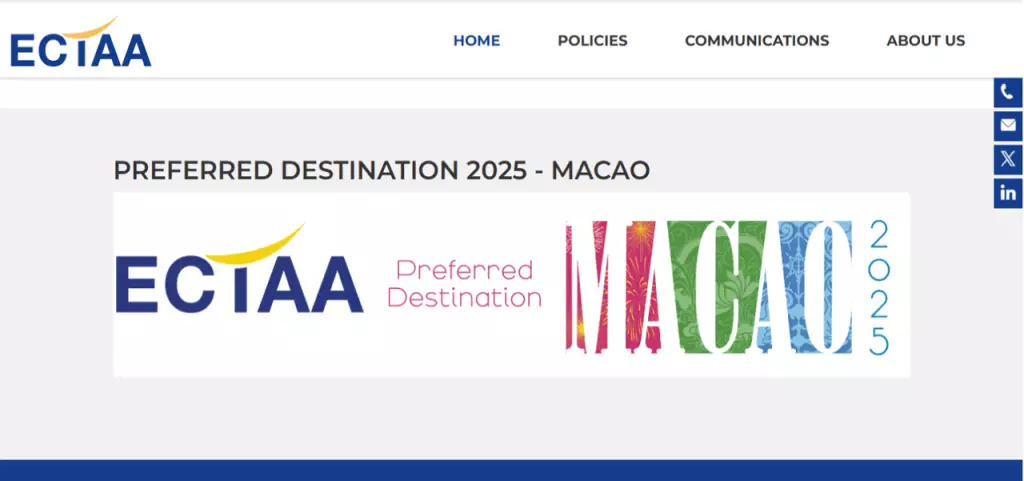 歐洲旅行社和旅遊運營商協會於其網站推廣澳門為「2025年推薦旅遊目的地」。澳門政府新聞局圖片